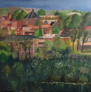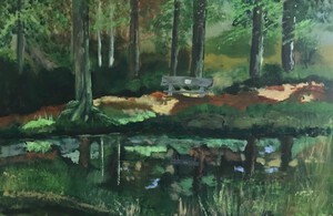 2022Geschilderd in het Liesbos Breda, met op de achtergrond het bankje van Jan Stube.