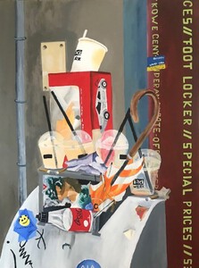 2022Dit werk is de eerste uit de serie " Beeldvormers " Het zijn de volle vuilnisbakkken na een dagje winkelen in het centrum van Breda.